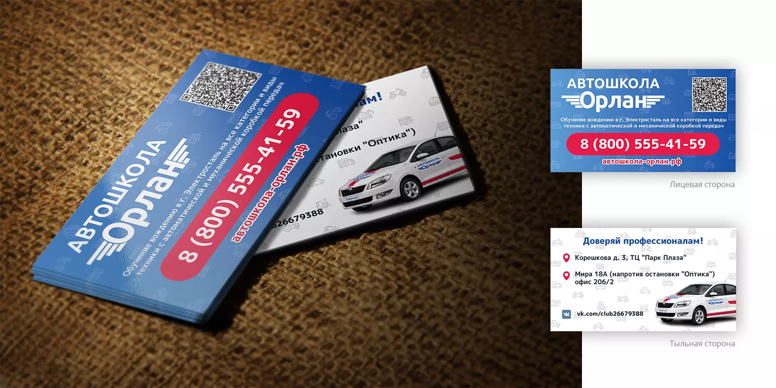 Разработка промо-визиток для автошколы «Орлан» в Полесске